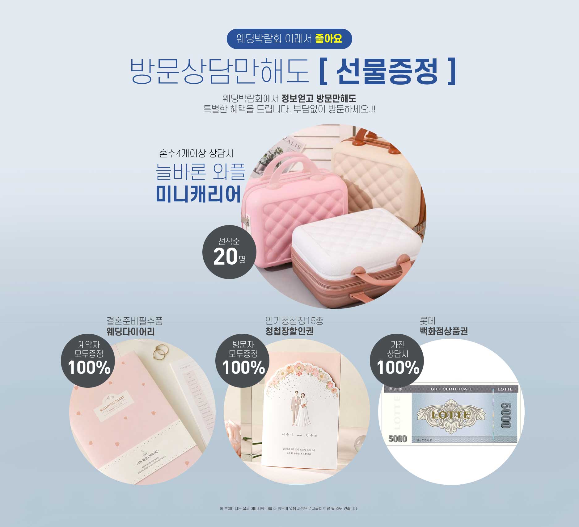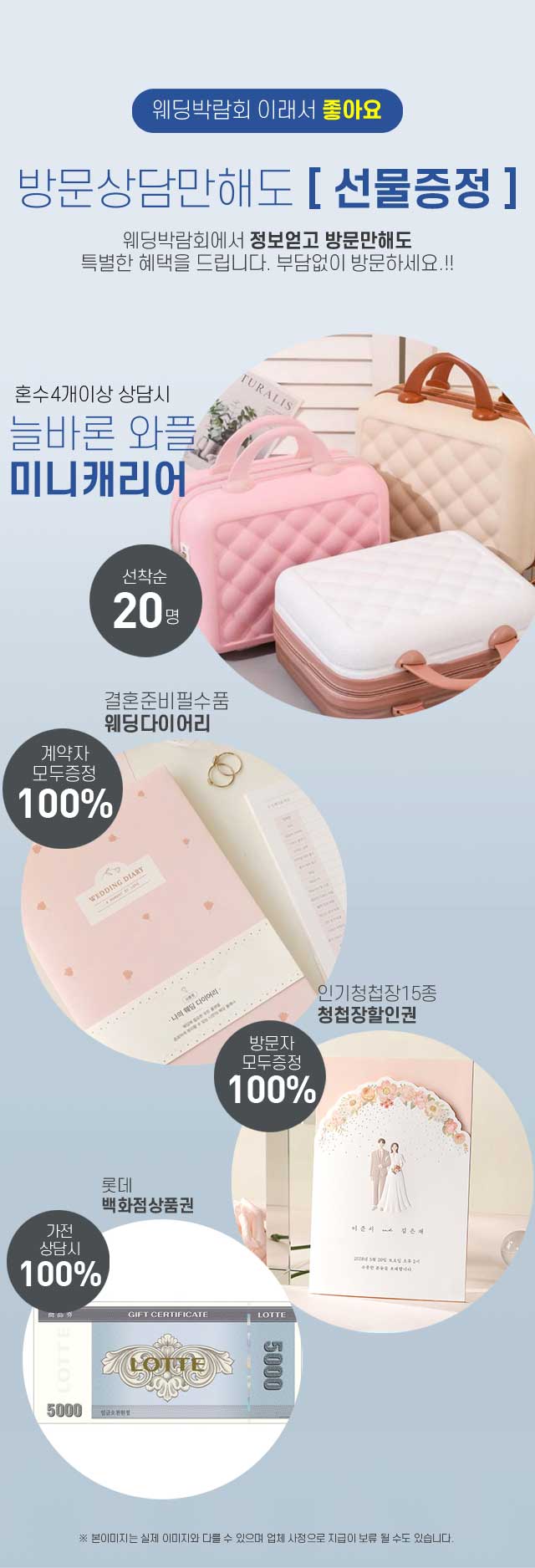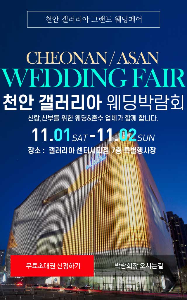 개인정보의 수집 및 이용목적 약관동의 내용 ▶ 개인정보의 수집 및 이용목적 - 서비스 이용에 따른 본인식별, 실명확인, 가입의사 확인, 연령제한 서비스 이용 - 고지사항 전달, 불만처리 의사소통 경로 확보, 물품배송 시 정확한 배송지 정보 확보 - 신규 서비스 등 최신정보 안내 및 개인맞춤서비스 제공을 위한 자료 - 기타 원활한 양질의 서비스 제공 등 ▶웨딩박람회 수집하는 개인정보의 항목 - 이름, 이메일, 주민등록번호, 주소, 연락처, 핸드폰번호, 그 외 선택항목 [개인정보의 수집 및 이용목적 약관동의] ▶ 개인정보의 수집 및 이용목적 - 서비스 이용에 따른 본인식별, 실명확인, 가입의사 확인, 연령제한 서비스 이용 - 고지사항 전달, 불만처리 의사소통 경로 확보, 물품배송 시 정확한 배송지 정보 확보 - 신규 서비스 등 최신정보 안내 및 개인맞춤서비스 제공을 위한 자료 - 기타 원활한 양질의 서비스 제공 등 ▶ 수집하는 개인정보의 항목 - 이름, 성별, 연락처, 참가예정일 등 ▶ 개인정보의 보유 및 이용기간 - 원칙적으로 개인정보의 수집 또는 제공받은 목적 달성 시 지체 없이 파기합니다. - 다만, 원활한 서비스의 상담을 위해 상담 완료 후 내용을 3개월간 보유할 수 있으며 전자상거래에서의 소비자보호에 관한 법률 등 타법률에 의해 보존할 필요가 있는 경우에는 일정기간 보존합니다. [개인정보 제3자 제공 동의] 행사주관사 는 개인정보보호법에 의거 귀하의 개인정보를 아래와 같이 제3자 제공하는 것에 대해 동의를 받고자 합니다. 1. 개인정보를 제공받는 자 : 삼성전자판매 주식회사 2. 제공하는 개인정보 항목 : 이름, 휴대폰 번호, 예식일, 입주일 3. 이용목적 : 혼수 가전 제품 관련 판촉행사 안내 등 (TM/MMS) 4. 보유 및 이용 기간 : 제공일로부터 10개월 ※ 귀하께서는 귀하의 개인정보를 제3자에게 제공하는 것에 대한 동의를 거부하실 수 있으나, 동의를 거부하실 경우 판촉행사 안내를 받으실 수 없습니다. 광고메시지수신동의(선택) 삼성전자판매 주식회사, (주)한샘 에서 보내는 이벤트, 프로모션 등에 대한 다양한 소식을 휴대전화 문자메시지 등으로 받아보실 수 있습니다. 귀하는 언제든지 본 동의를 철회할 수 있습니다.